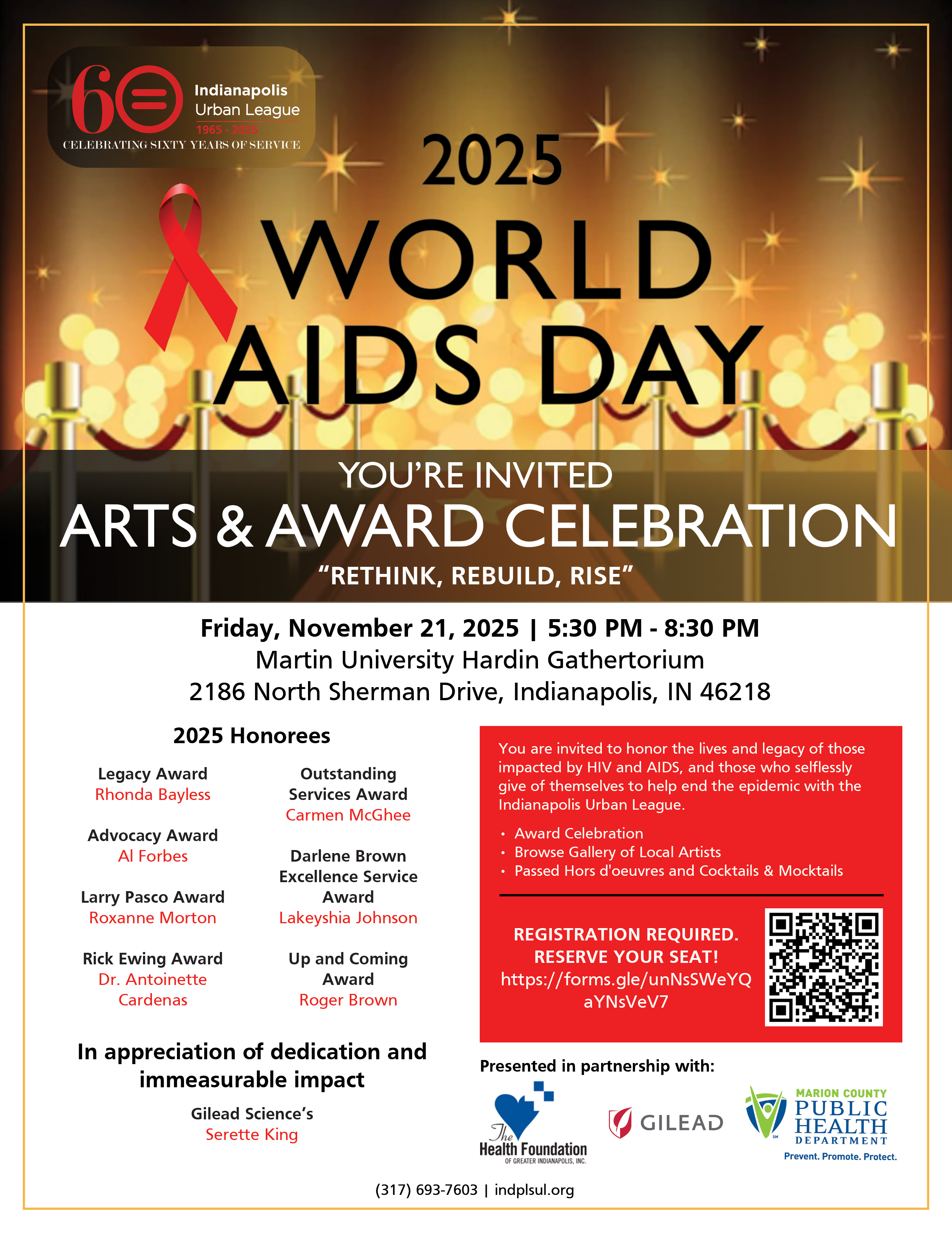 Presented by the Indianapolis Urban League in partnership with Gilead, the Marion County Public Health Department, and the The Health Foundation of Greater Indianapolis, Inc.